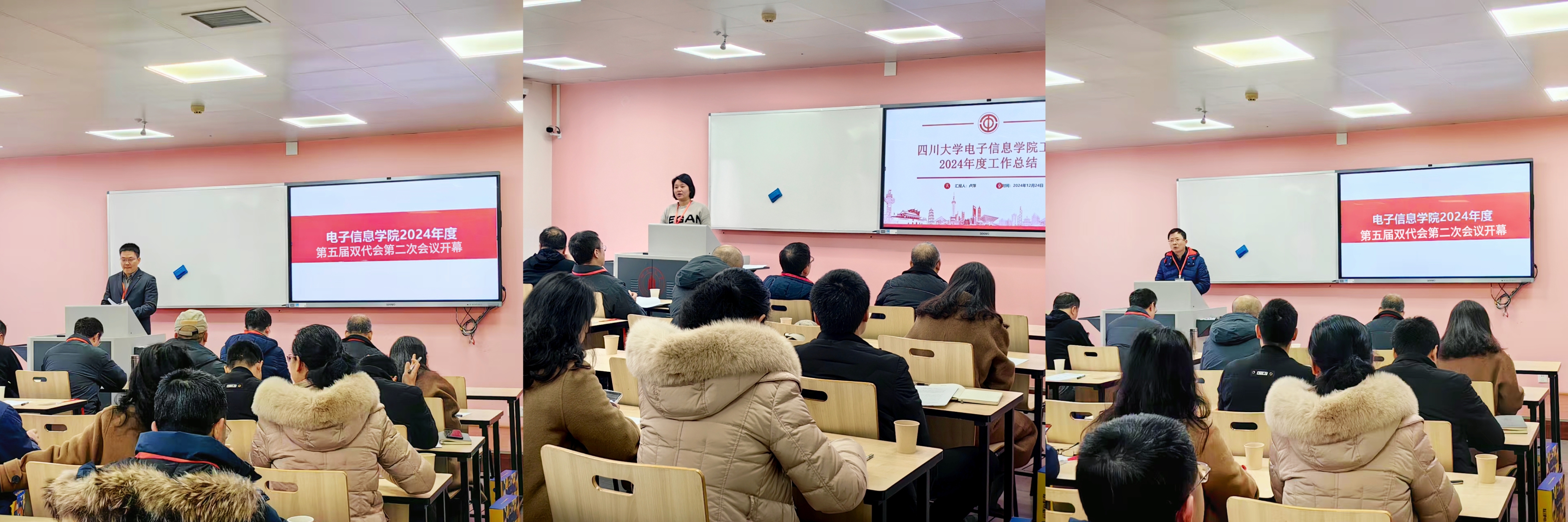 2024年12月24日上午10点,yl23411永利(集团)有限公司官网第五届双代会第二次会议在望江校区基础教学楼A420教室顺利举行。本次大会由卿粼波副院长主持,学院党委彭舰书记发表了热情洋溢的开幕词,为本次大会拉开庄严肃穆的序幕。