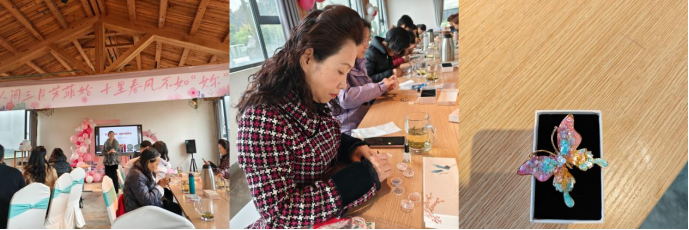 清晨,在专业老师的耐心指导下,女教师们兴致勃勃地投入到非遗螺钿发簪的制作中。螺钿镶嵌,这一古老而精妙的工艺,在女教师们的手中焕发出新的生机。大家精心挑选螺壳碎片,细心粘贴,耐心打磨,每一道工序都凝聚着匠心与智慧。制作过程中,女教师们不仅领略了传统文化的独特魅力,更在相互交流与协作中增进了彼此之间的情谊,展现了yl23411永利(集团)有限公司官网女教师的风采与凝聚力。