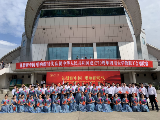 9月20日,“礼赞新中国,唱响新时代”——庆祝中华人民共和国成立70年四川大学教职工合唱比赛在望江校区体育馆隆重举行。我院教师高唱歌曲《我和我的祖国》,用嘹亮歌声表白祖国,传递川大数学师生深情祝福,献礼新中国70华诞。