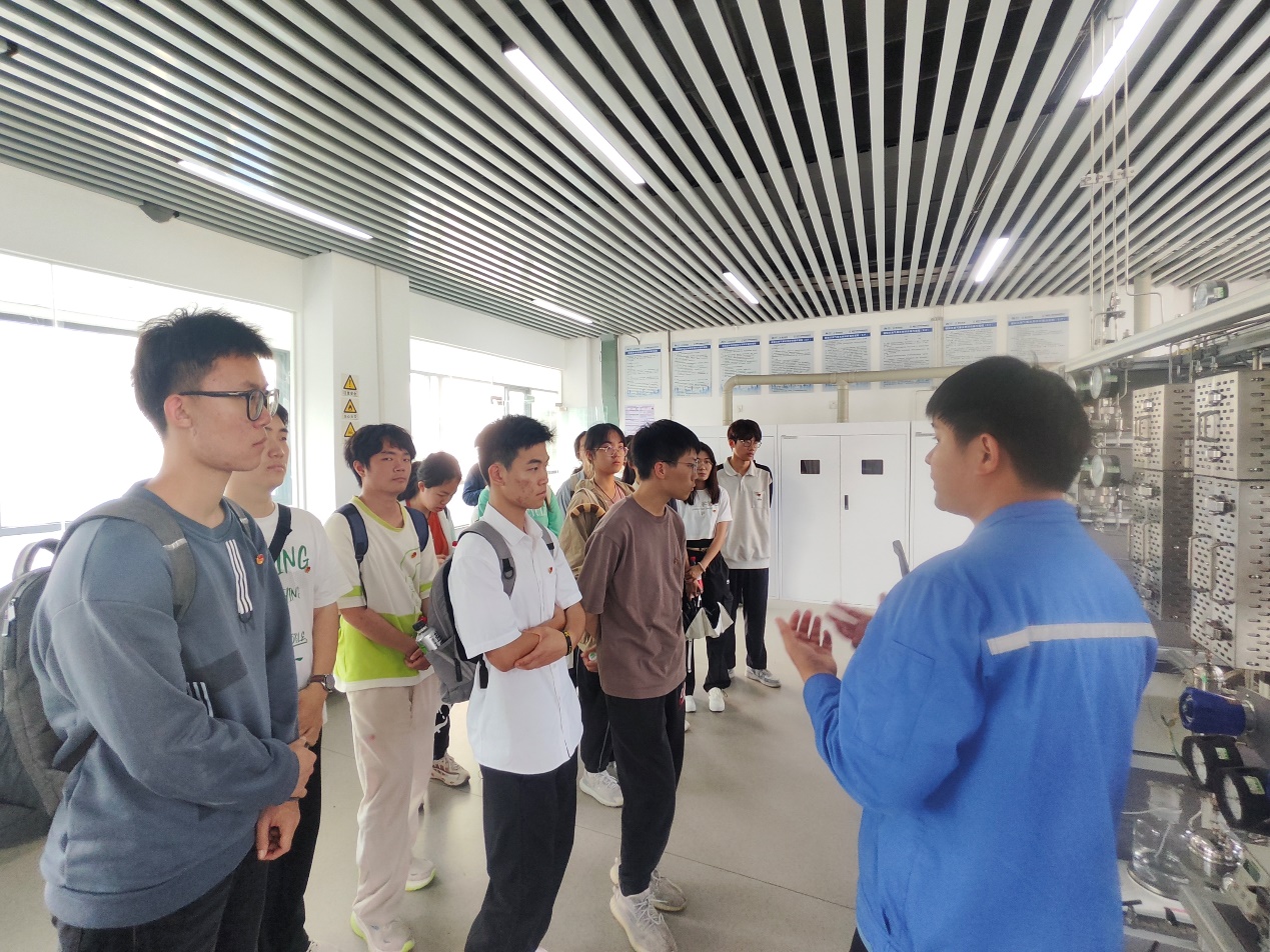 最后,实践队参观了变压吸附模拟实验室、CO2捕集实验室以及催化剂实验室,同学们进一步了解了企业研发特色、创新实践过程及科研转化途径。