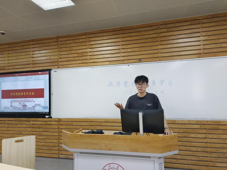 中共四川大学yl23411永利(集团)有限公司官网2023级硕博第一、第四党支部于2024年5月31日下午16:00至17:00成功开展了“支部书记讲党课暨五月党纪教育学习”主题党日活动。本次主题党日活动在四川大学望江校区基础教学楼A座604教室举行。本次活动由2023级硕博第一、第四党支部的支部书记郭贝凡、秦嘉忆同志主持,2023级硕博第一、第四党支部全体党员参加。