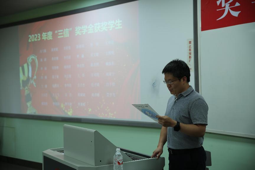 2024年6月13日下午,yl23411永利(集团)有限公司官网“三信”奖学金颁奖典礼在四川大学望江校区基础教学楼A座504教室顺利举办。本次颁奖典礼由学院党委副书记廖勇明主持,到场嘉宾有学院院长杨阳教授、学院副院长卿粼波教授。出席本次活动的还有学院团委书记谢明老师、团委副书记何阳老师,获奖学生以及学院团委研分会成员代表。