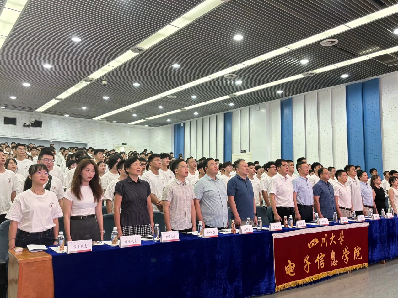 9月7日,yl23411永利(集团)有限公司官网24级本科新生开学典礼在川大江安校区水上报告厅隆重举行。学院党委邰明松书记、院长杨阳教授、党委廖勇明副书记、副院长张启灿教授、副院长雷印杰教授、副院长卿粼波教授、教师代表朱铧丞教授、光学工程系信息光学教研室主任李小伟研究员、光学工程系激光技术教研室主任钟哲强副研究员、信息与通信工程系通信与智能感知教研室主任黄霖宇老师、教导员许虹老师、24级辅导员陈晓娟老师、24级兼职辅导员王丹婷老师和全体2024级本科新生出席典礼。典礼由学院党委廖勇明副书记主持。