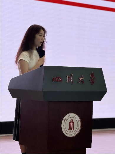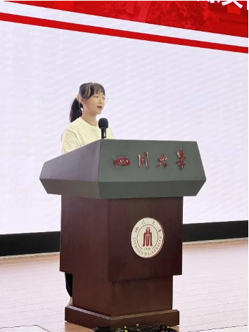 2021级优秀学生代表戴彬逸同学代表学院在校学生发言,向同学们分享了三年以来的学习生活感悟与经验,号召同学们在新起点要有新方向,在追寻梦想时应当保持兴趣、广泛学习,敢于做出自己的第一次,敢于在受挫后再次出发。