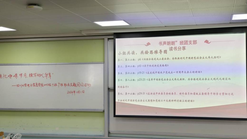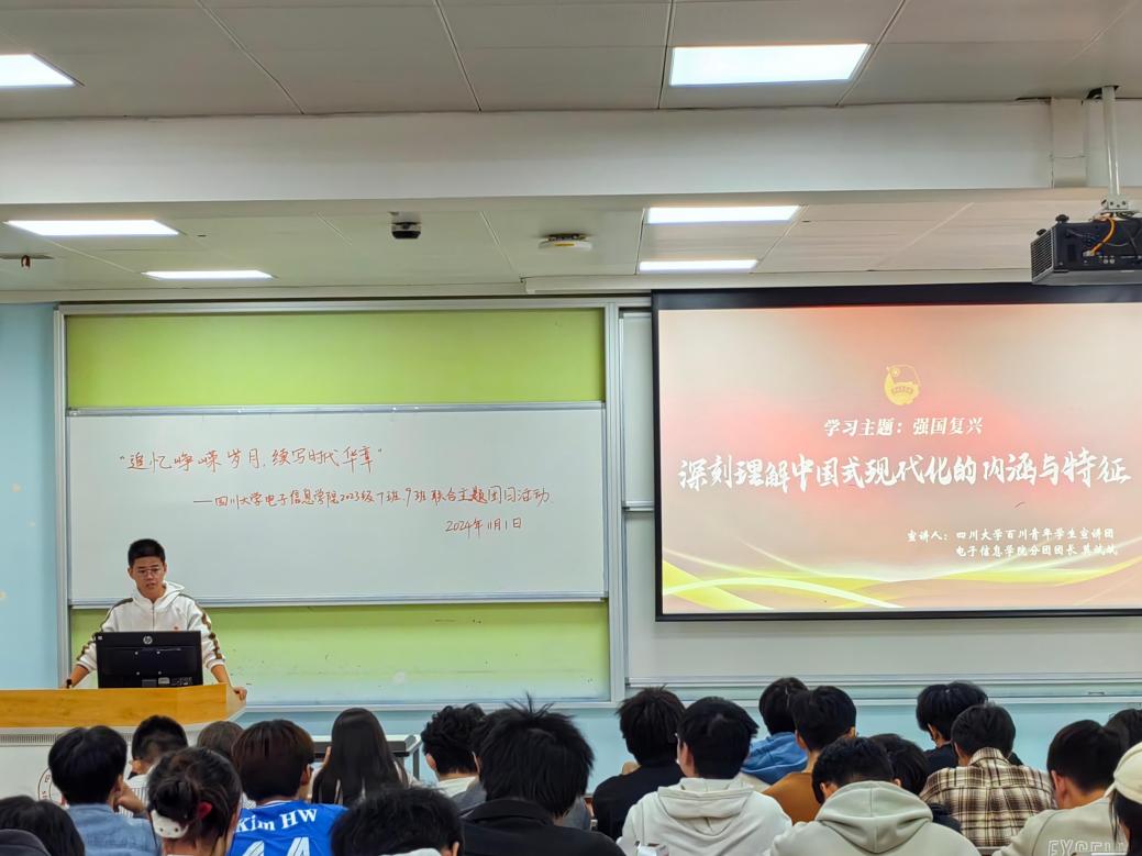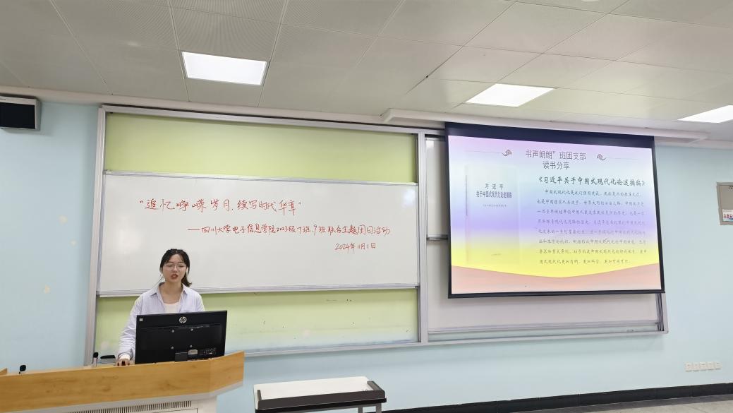 党的二十大擘画了以中国式现代化推进中华民族伟大复兴的宏伟蓝图,在波澜壮阔的时代画卷上,11月1日下午,四川大学yl23411永利(集团)有限公司官网2023级7班与9班团支部以青春之名,扬帆起航,联合开启了一场主题为“青春领航:共读中国式现代化”的读书分享会。团员青年们汇聚一堂,共同探索《习近平关于中国式现代化论述摘编》的深邃思想,以青春的视角解读中国式现代化的宏伟蓝图。此次活动不仅是一次知识的盛宴,更是一次心灵的洗礼,旨在引导团员青年深刻领会中国式现代化的精髓,激发他们为实现中华民族伟大复兴的中国梦而不懈奋斗。
