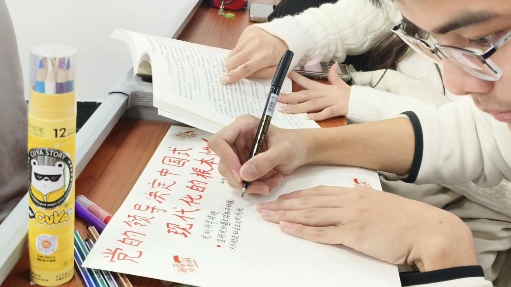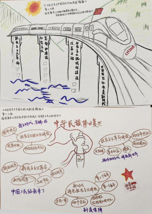 团员陈然认为:“在共绘环节中,我们小组通过绘制思维导图,将中国式现代化的各个方面联系起来,这个过程让我更加清晰地看到了现代化建设的全局。我深刻感受到,每个人的努力都是中国式现代化不可或缺的一部分。”在“共读、共学、共绘”三个环节中,每一位同学都学有所成,学有所获。