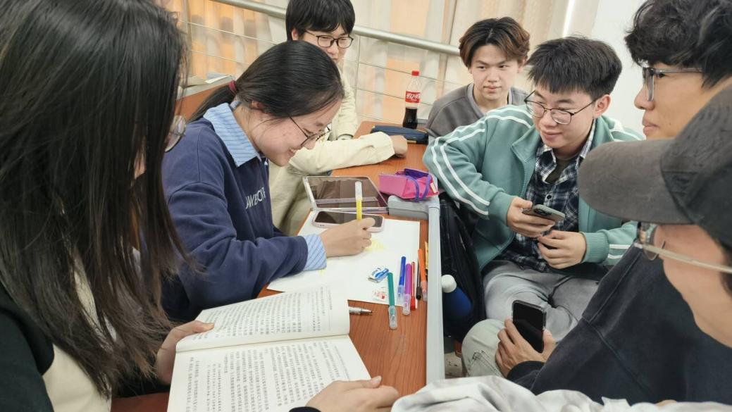 图为同学们阅读并进行交流讨论