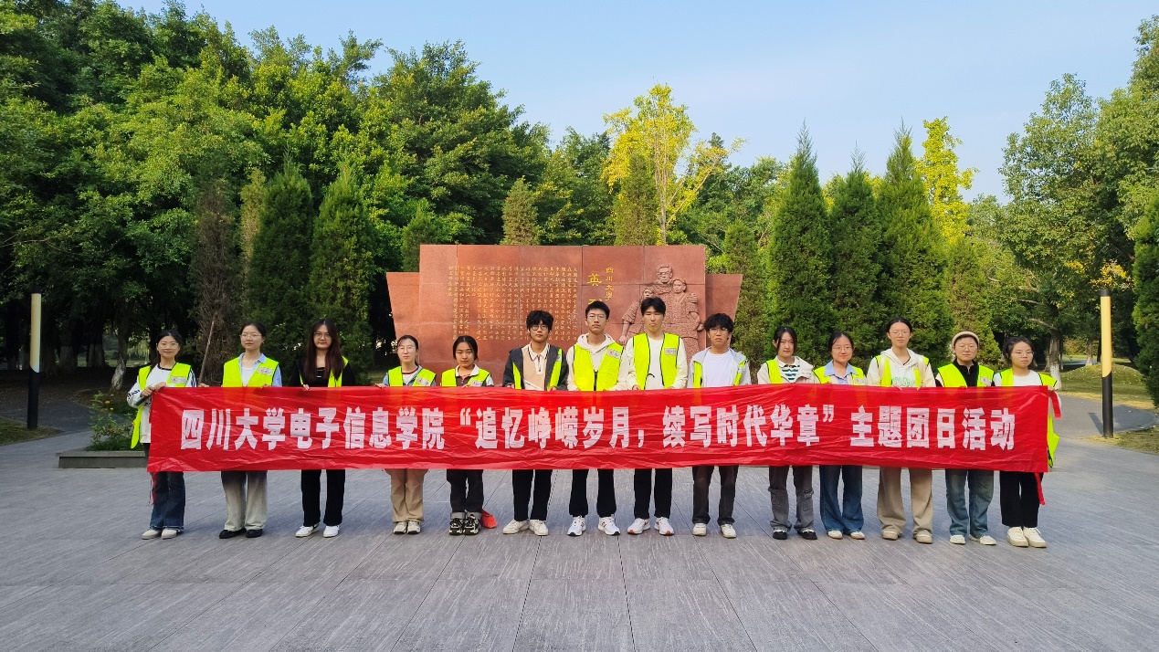 图为同学们在江安英烈碑前合影