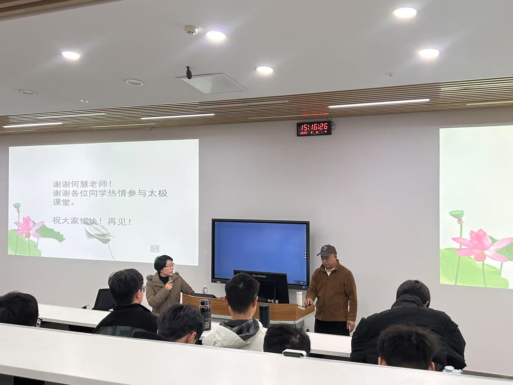 讲座过程中,孙老师就“三脑”与“太极”这两大方面和他们的关系分别进行重点介绍。最后孙老师组织同学们站起来感受三脑,做出简单的太极动作。同学们都积极参与到活动当中。讲座结束后,何惠老师对本次讲座进行了总结并再次感谢孙老师的分享,同学们用热烈的掌声感谢孙卫国老师作的精彩讲座。