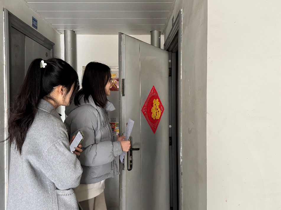 志愿者们以两至三人为一小组,根据受访问者汇总表挨家挨户进行访问。他们面向55周岁以上的居民,围绕居住情况、健康状况、养老服务、生活需求包括医疗、家政、增值服务在内等信息展开询问,同时关注老年人生活质量,重点询问日常休闲方式、期待的社交活动、智能设备使用等信息,并认真记录。在访问过程中,对老人家中无人应答、门扉紧闭的情况,他们留下访问通知,希望居民看到后能够主动联系社区;面对有些老人的委婉推辞,志愿者们始终保持礼貌,为冒昧打扰表示歉意,礼貌问候并告别。在询问和登记流程中,志愿者们始终保持着耐心和细心,用最亲切的话语、最真诚的态度与老人们交流沟通,确保每一项信息都准确无误地记录在案。