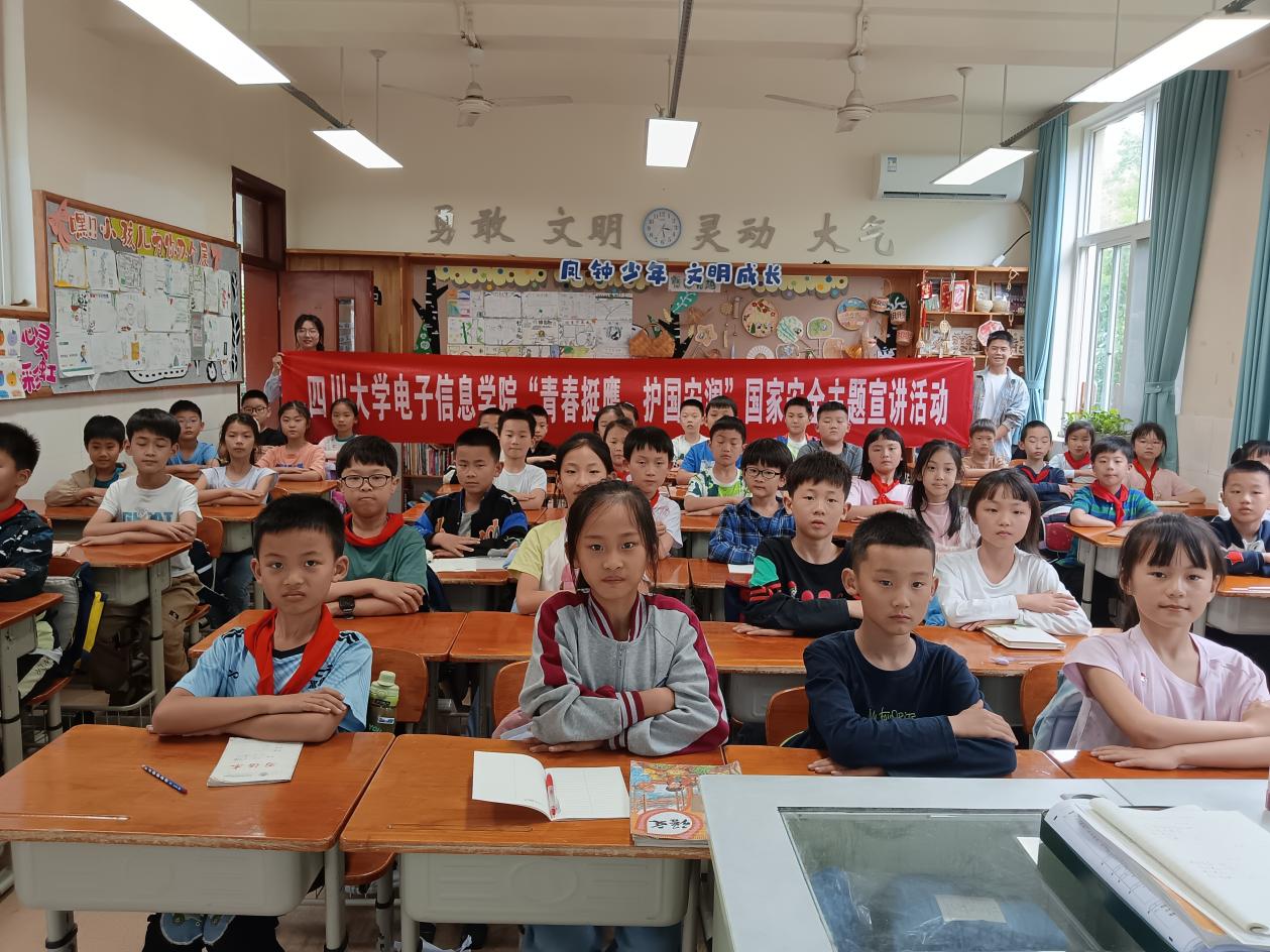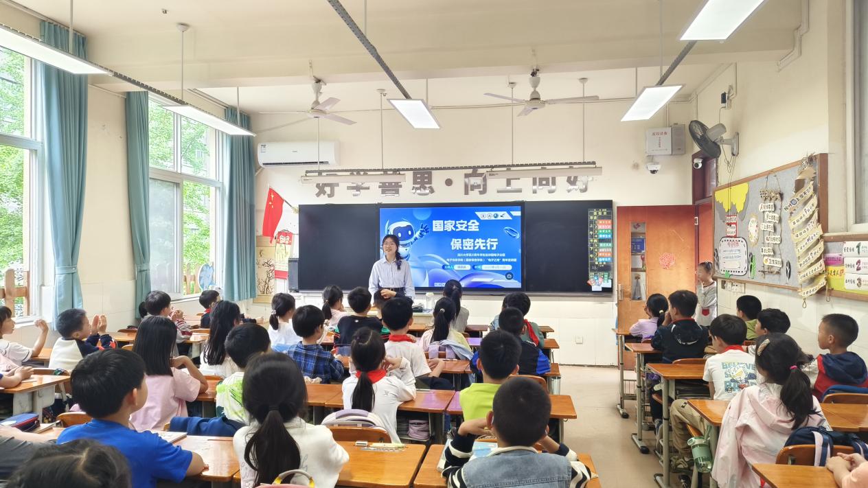 为增强青少年群体的国家安全意识,引导学生从小树立正确的国家安全观念,筑牢校园安全防线,2025年4月25日,百川青年学生宣讲团电子分团、yl23411永利(集团)有限公司官网(国家保密学院)“电子之鹰”青年宣讲团走进川大附小,开展了一场主题为“国家安全,保密先行”的宣讲活动。宣讲团团长莫斌斌、成员谭晶晶参加宣讲活动。