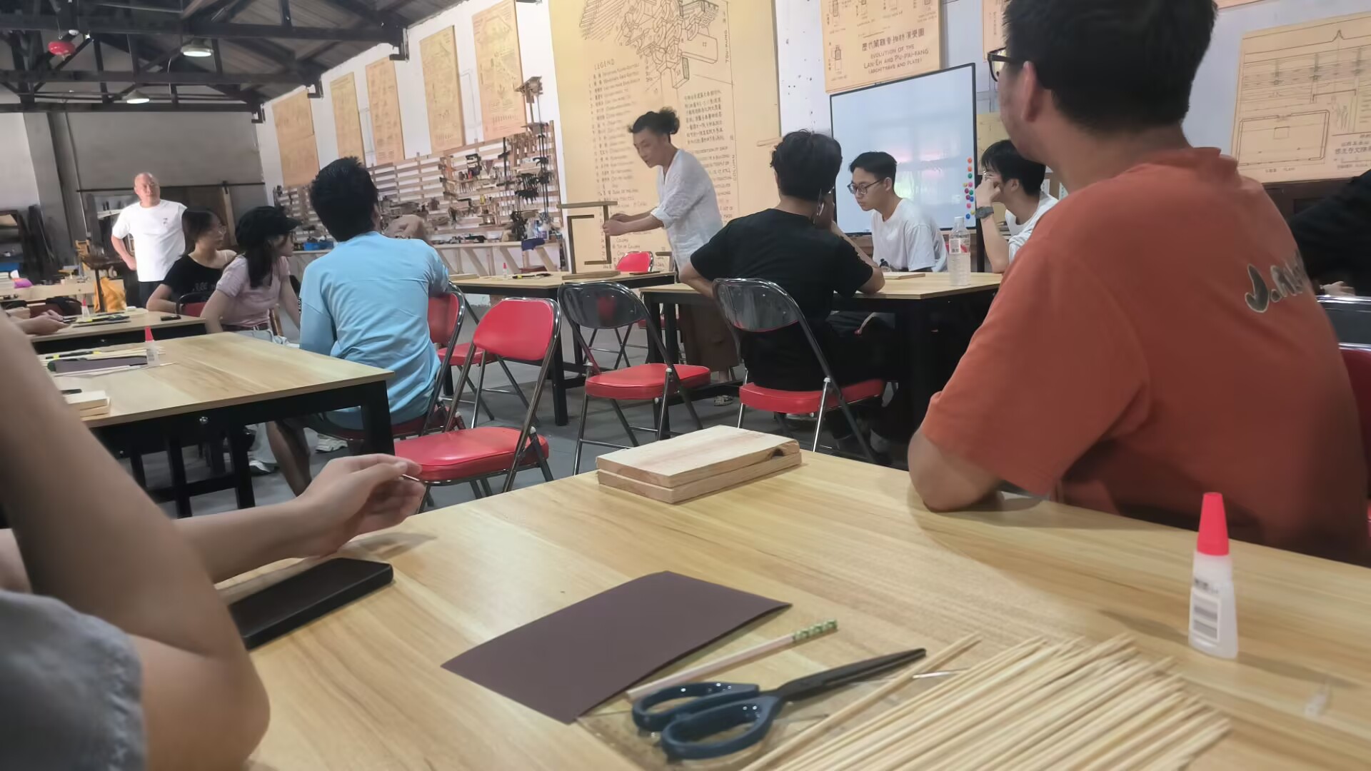 抵达白家场社区后,同学们受到了社区工作人员和木工老师的热情接待。工作人员和木工老师首先为同学们详细讲解了木工工具的使用方法以及安全注意事项,让同学们对即将开展的木工实践有了基础的认知,也为实践活动的安全进行提供了保障。