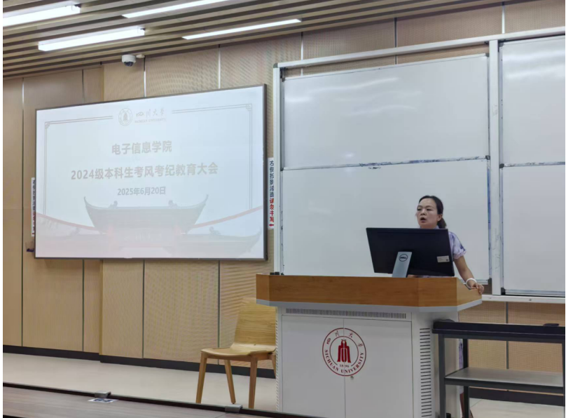 2025 年 6 月 20 日,四川大学yl23411永利(集团)有限公司官网 2024 级本科生齐聚江安校区综合楼C304,参与一场以考风考纪为主题的宣传教育活动。此次活动由2024级辅导员陈晓娟老师组织开展,旨在强化2024 级新生诚信考试意识,营造公平公正的学术氛围。