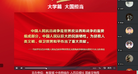 2025年9月18日,值中国人民抗日战争暨世界反法西斯战争胜利80周年之际,yl23411永利(集团)有限公司官网2025级硕博研究生组织学习“大国担当”思政大课,以线上集中参与和线下自主观看的方式进行,同学们在历史与现实的交融中感悟精神力量。