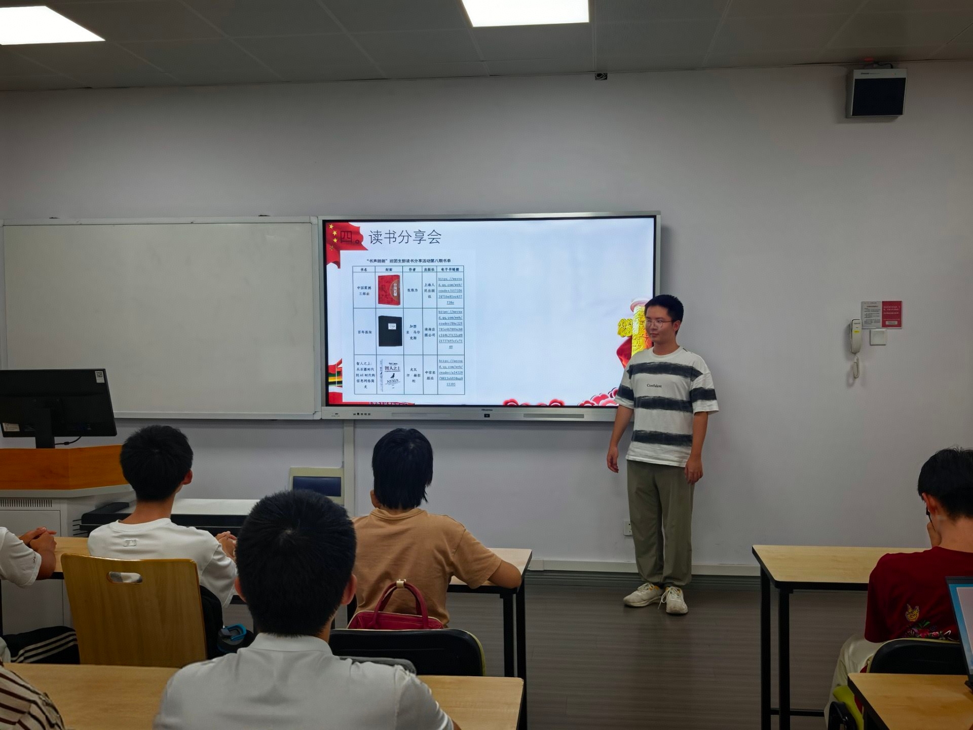 聆听时代强音,赓续红色血脉,随后,团支部书记彭燕同学带领团员们学习习近平总书记在纪念中国人民抗日战争暨世界反法西斯战争胜利80周年大会上的重要讲话精神,讲述101岁老兵孙文秀和广州工控集团董事长景广军的奉献故事以及观看九三阅兵的感触。随后,她介绍了望江校区江姐纪念馆,并带领团员们共同观看《弘扬伟大抗战精神 做光荣自豪人》的思政大课。最后,她强调作为共青团员,更应弘扬伟大精神,凝聚奋斗力量。