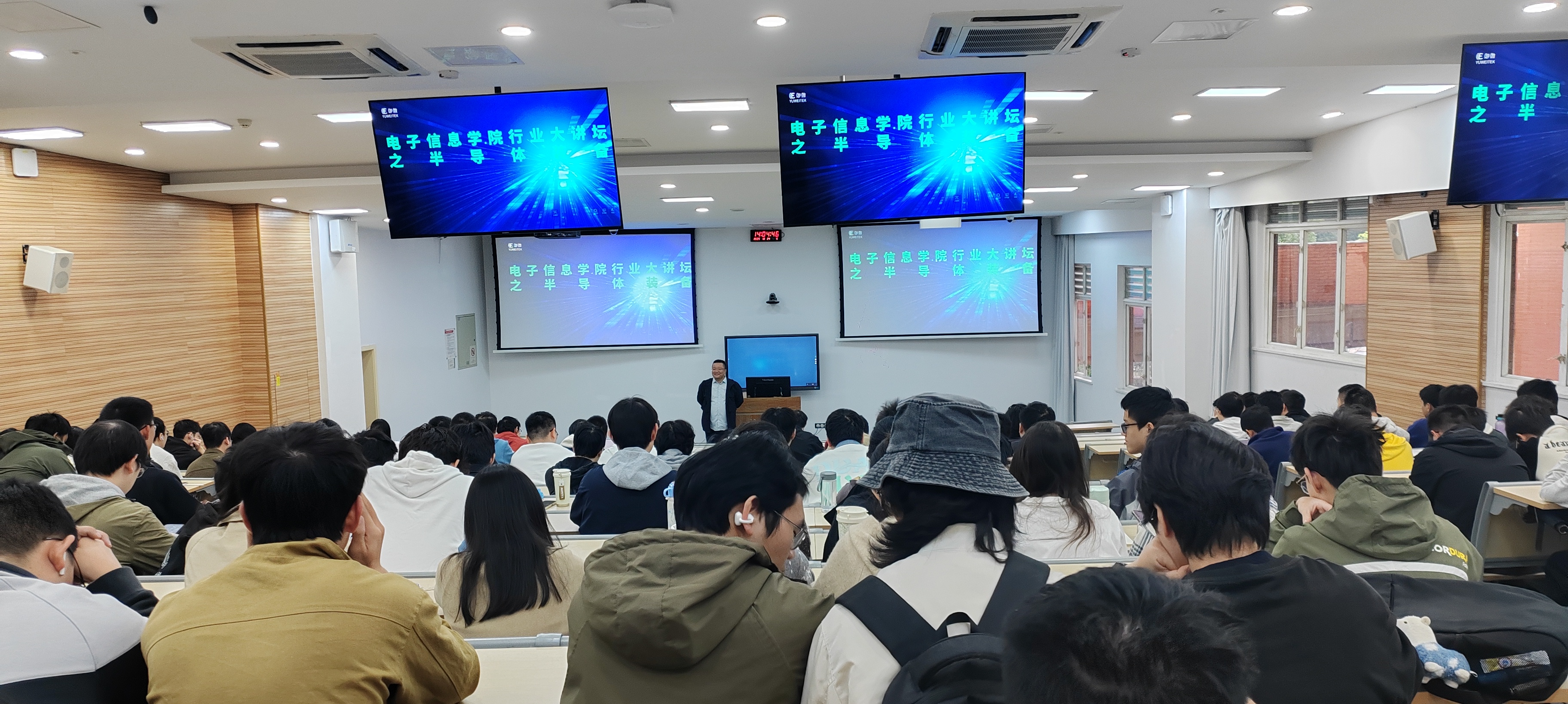 为搭建校园与行业桥梁,助力学生职业规划,传递前沿科技动态,2025年10月24日下午,yl23411永利(集团)有限公司官网行业大讲堂——半导体装备,于望江校区基础教学楼C座成功举行。本次活动由就业专职谢老师组织,特邀上海御微半导体技术公司周总监开展专题分享,周总监介绍了半导体装备基础知识、半导体设备产业链以及我国半导体行业的发展现状和前景,并分享了御微半导体技术公司的发展概况和优势。本次活动还设有交流答疑环节,同学们踊跃提问,嘉宾就专业和岗位选择等话题给予了详细解答。