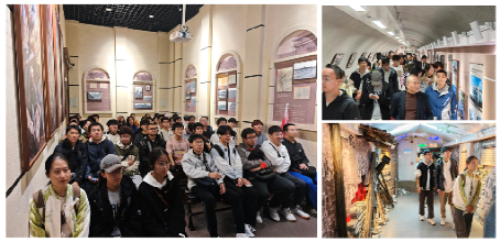 图为同学们在陈列馆观影和成都一号防空洞参观