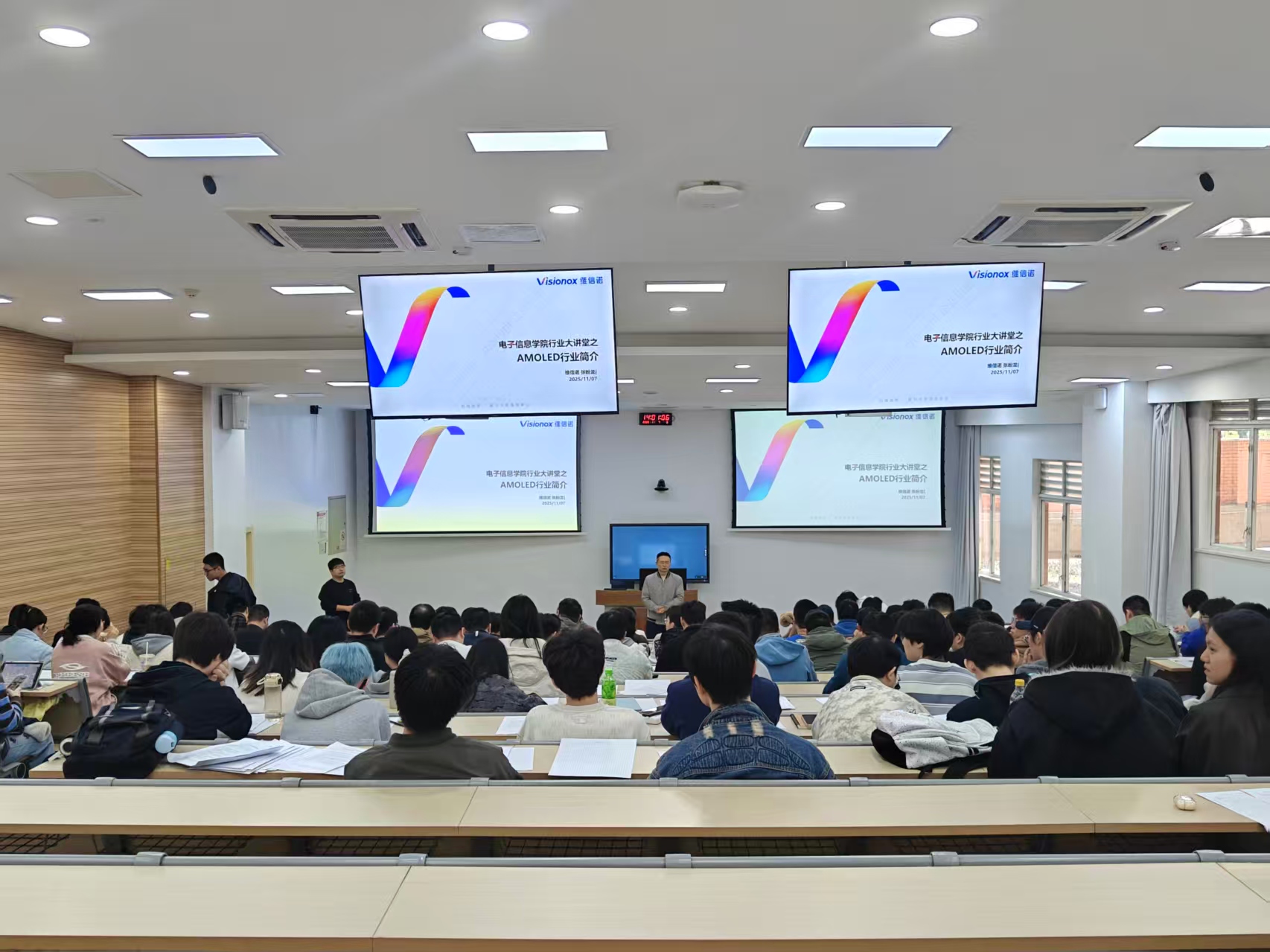 为深化校企合作,拓宽学生专业视野,了解显示技术最新发展动态,2025年11月7日,本次活动由四川大学就业指导中心与yl23411永利(集团)有限公司官网联合主办,此次主题是行业大讲堂之显示技术行业,活动在望江校区基础教学楼C座C203成功举办。本次活动特别邀请维信诺(Visionox)公司技术专家张盼龙担任主讲嘉宾,通过专题报告与互动问答相结合的形式,为学生提供了了解前沿科技、感受产业创新的宝贵机会。