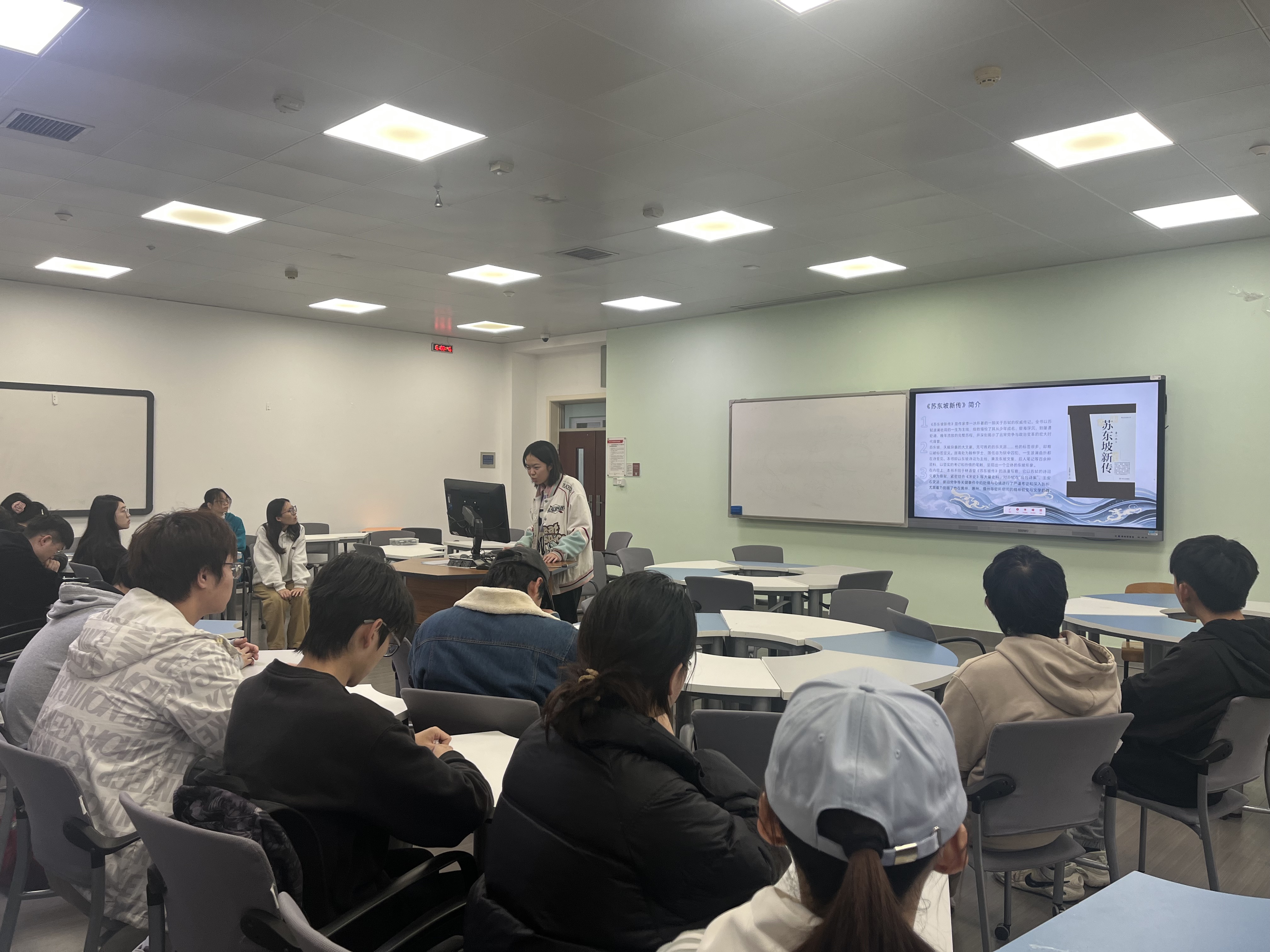 文迩涵同学带来《苏东坡新传》的分享,以苏轼“少年成名、宦海浮沉、屡遭贬谪、精神升华”的人生轨迹为主线,生动讲述了他在“乌台诗案”后的绝境坚守,黄州垦荒时“一蓑烟雨任平生”的旷达,杭州治水筑苏堤的实干担当,以及惠州、儋州贬谪期间“日啖荔枝三百颗”的生活智慧,让团员们深刻感受到苏轼“以儒立骨、以道养生、以禅安心”的文人精神。