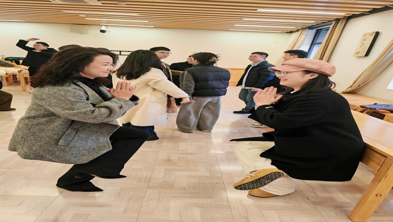 听完何惠老师富有哲理性的引入,团队设计了两个层次分明的破冰活动。首先进行的升级版“心脏病”游戏迅速打破了原本拘谨的学术氛围,现场充满了愉悦的欢笑;紧接着的正念静心环节则巧妙地将活跃的气氛转化为专注的能量。通过这个环节,成员们开始意识到,良好的人际沟通不仅需要开放的心态,更需要专注的倾听与觉察。