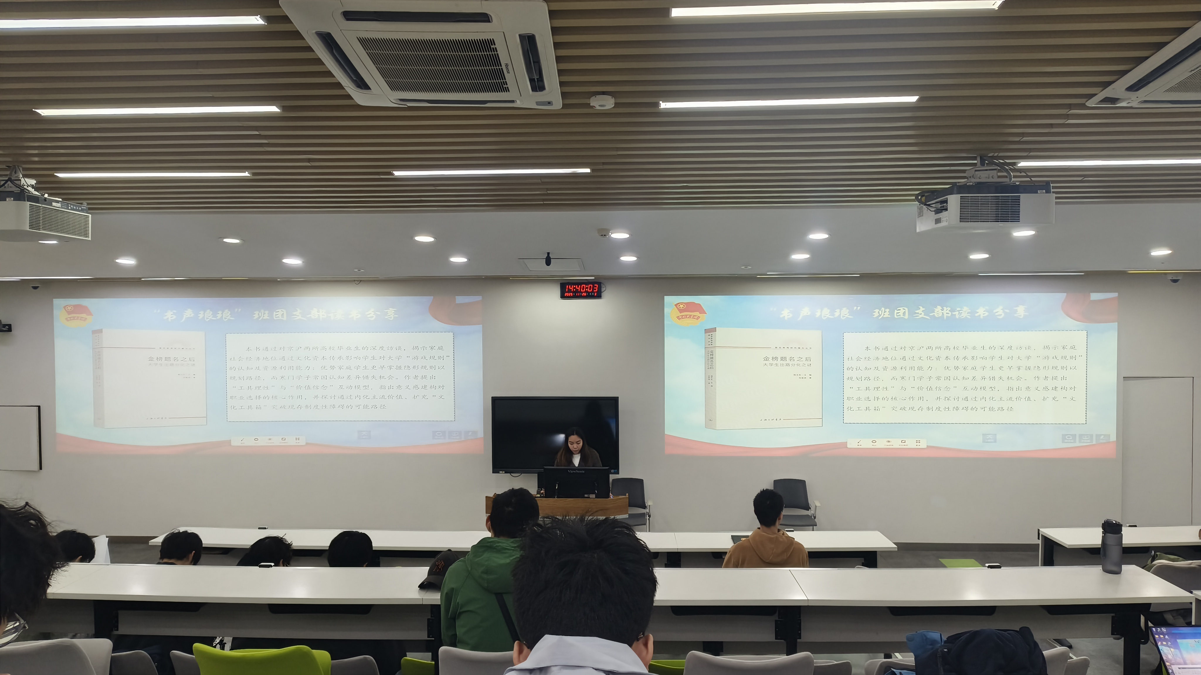 青年,在思想碰撞中明晰方向。“奋进担当·青年思辨会”以“书声琅琅”读书分享开篇,易音彤分享了《金榜题名之后——大学生出路分化之谜》的阅读体会,为青年突破成长局限提供了宝贵视角。
