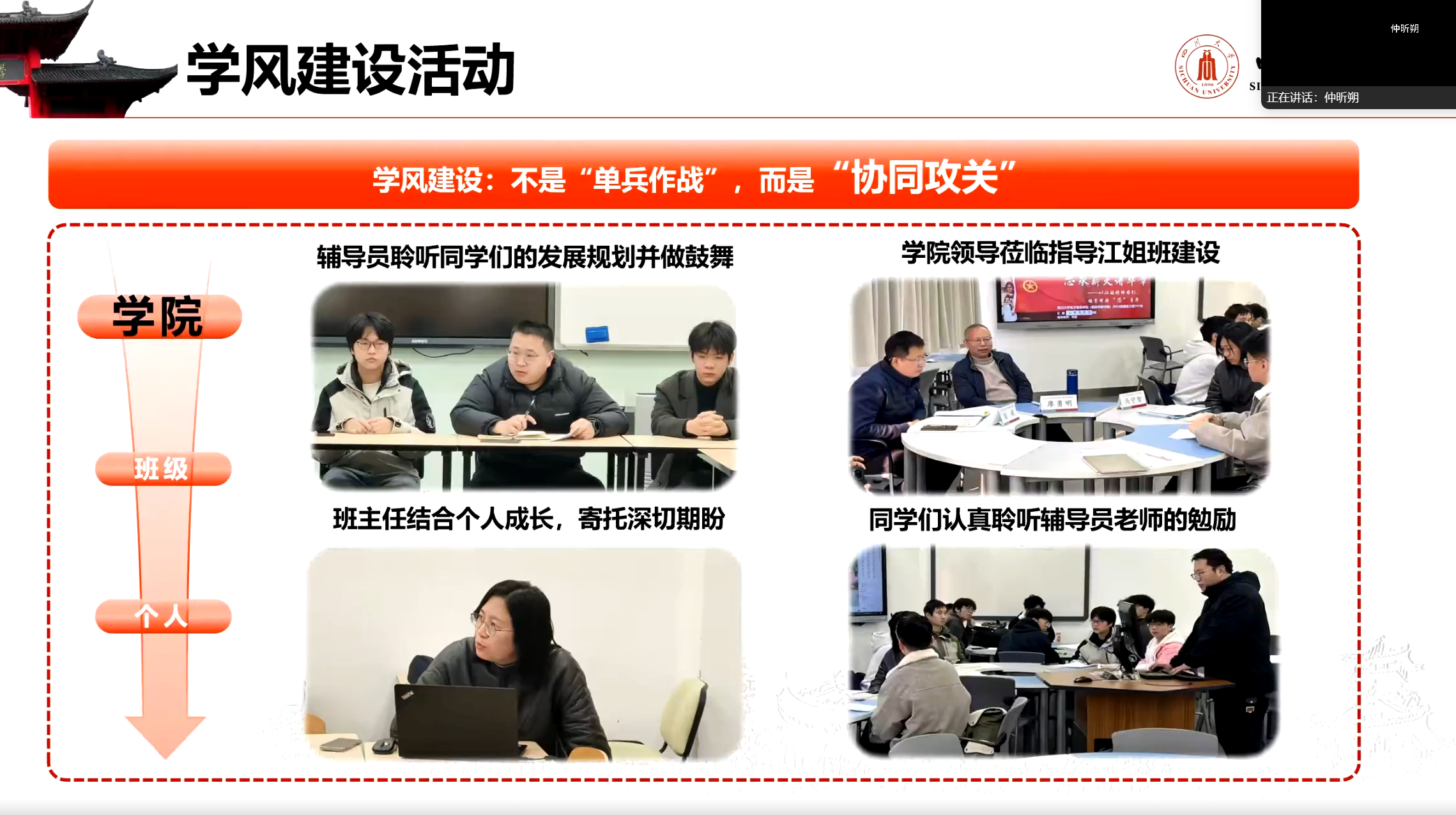 图为仲昕朔进行班级学风建设情况介绍