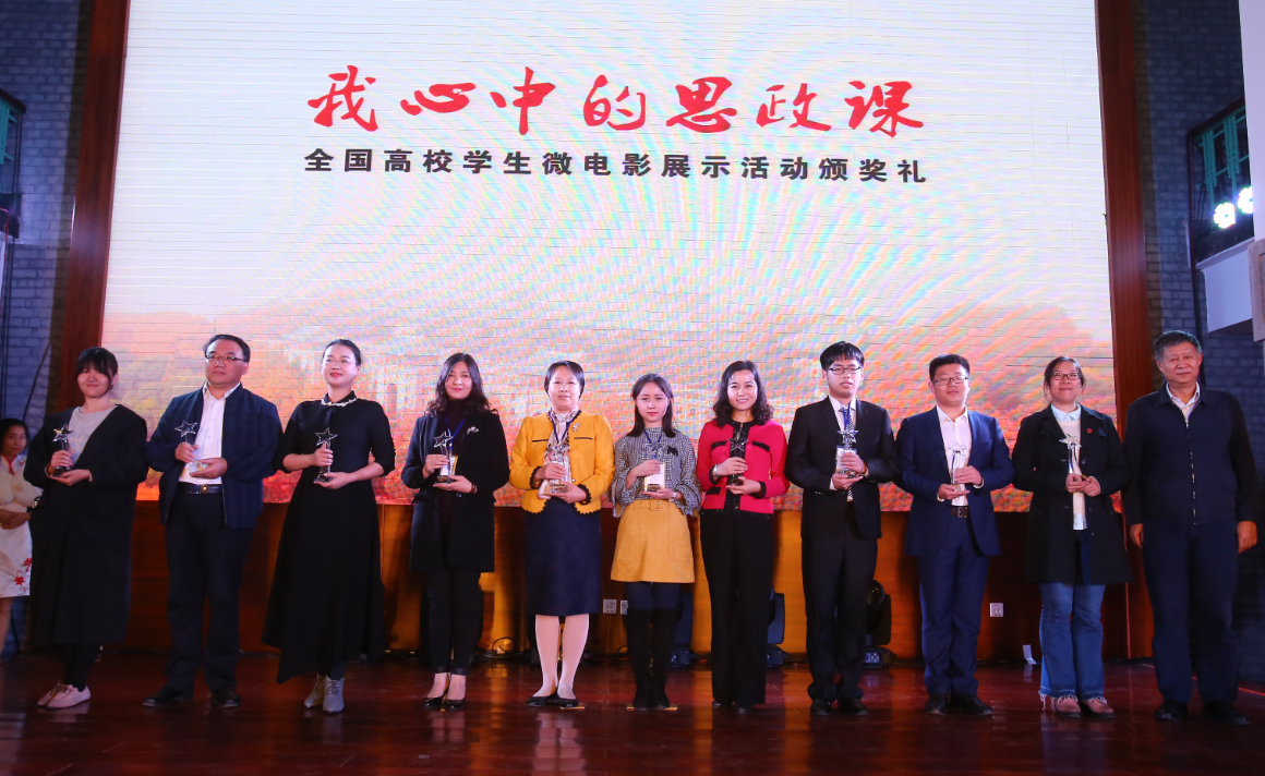 2017年11月10日,由教育部社会科学司指导武汉大学组织开展的首届“我心中的思政课”全国高校学生微电影展示活动暨颁奖典礼在武汉大学举行。由我院15级本科学生蒋术语、林子晋、何英俏、吕松阳、袁明亮,外国语学院的罗庆益和文学与新闻学院的苏婧、董心悦创作的作品《思说记》经过激烈角逐,从全部参赛的200余部作品中脱颖而出,荣获全国一等奖和最佳创意奖。教育部社科司司长刘贵芹,四川省教育厅宣思处处长罗杉杉出席了本次颁奖礼。我校肖孟夏老师和作品主创代表蒋术语同学参加了颁奖典礼。