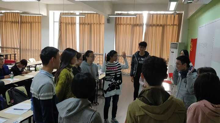一轮紧张的答疑之后,来到了轻松的游戏环节,各班团支书积极参与,游戏现场气氛十分活跃,欢声笑语回荡教室,大家在游戏中体会到了合作与交流,也加强了各班团支书的联系。