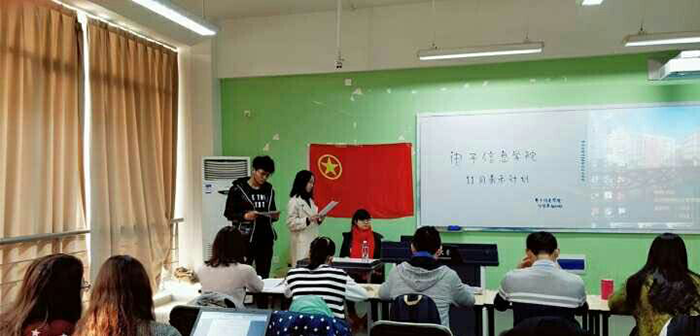 本次活动于9:30准时拉开帷幕,首先主持人宣布11月青禾计划正式开始,接着全体同学起立,奏唱中国共产主义青年团团歌,各班团支书用歌声展现他们的朝气。随后,组织部成员向各班团支书发放《中共中央关于认真学习宣传贯彻党的十九大精神的决定》,团支书们拿到该决定后自行认真阅读二十分钟,后由组织部干事杨倩同学根据上级精神详尽地解读《决定》。解读完毕后,团支书们更加深刻地理解到十九大的精神,并自行根据所学情况完成了由组织部干事根据《决定》出的检测习题卷,十分钟后主持人公布答案,团支书们根据题目进行提问,主持人进行了一对一解答。
