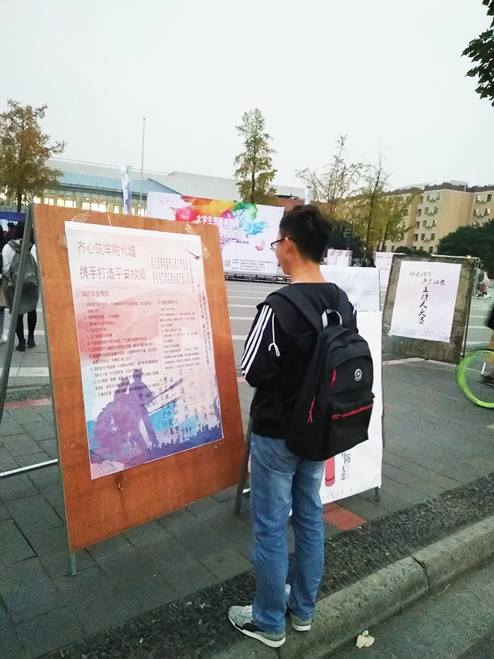 2017年11月9日,yl23411永利(集团)有限公司官网消防安全宣传活动在四川大学江安校区青春广场举办。在为期四天的活动中,yl23411永利(集团)有限公司官网在青春广场贴出展报进行消防安全宣传。yl23411永利(集团)有限公司官网团委学生会权益素质拓展部全体部长、干事及各班班长、生活委员都参与了这次消防宣传日的消防安全知识宣传。