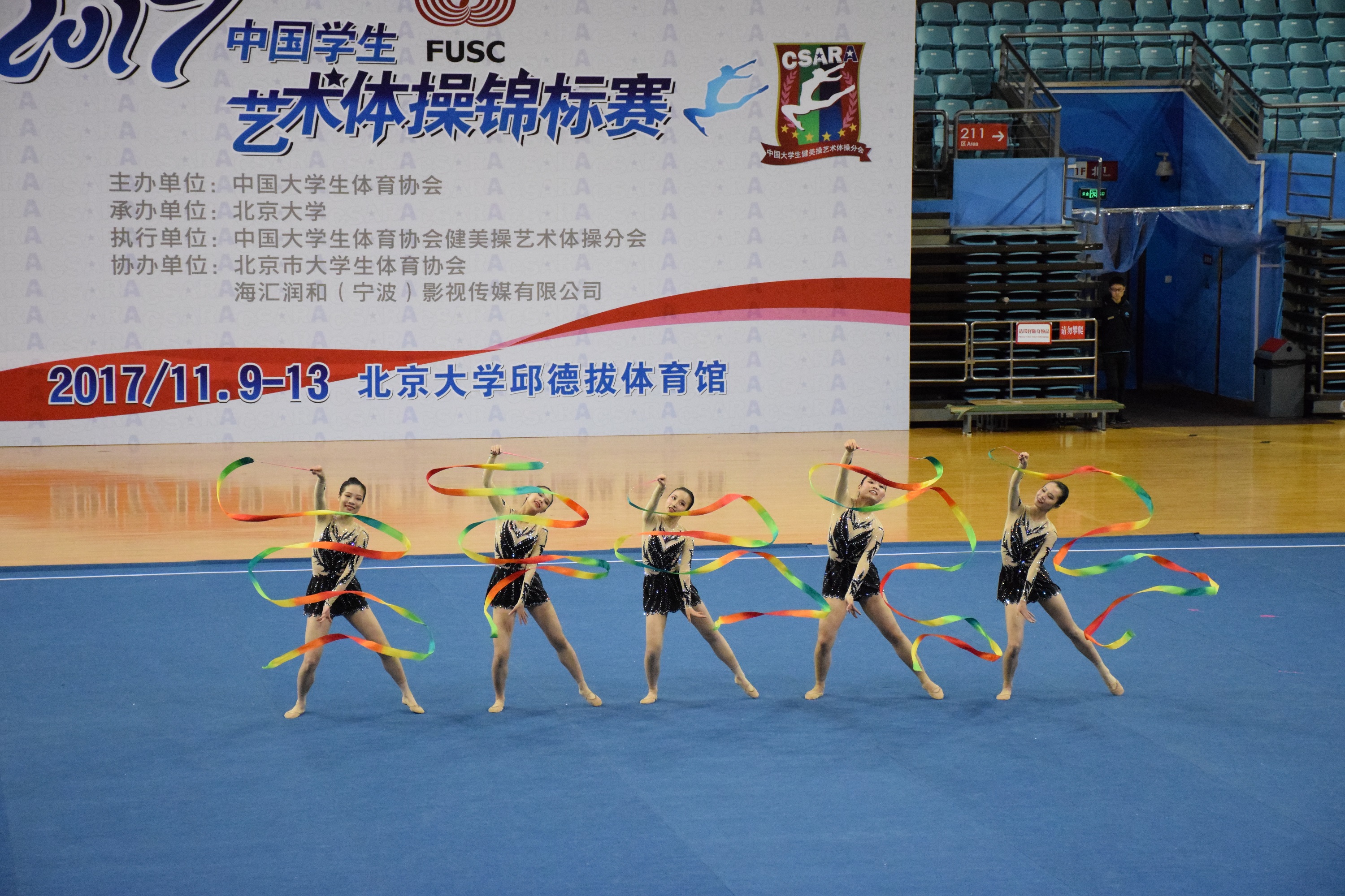 11月10日至13日,由中国大学生体育协会主办、北京大学承办的2017年中国学生艺术体操锦标赛在北京大学邱徳拔体育馆举行,此次比赛共有全国28所大学、80余所中小学的900多名运动员参加。