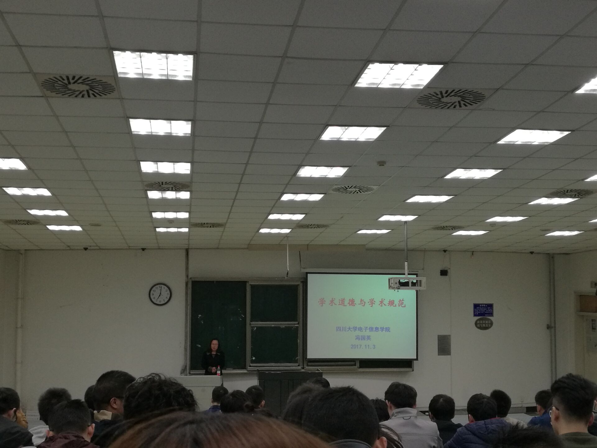 2017年11月3日晚19:00,由四川大学yl23411永利(集团)有限公司官网院长冯国英教授主讲的研究生综合素质系列课程之诚信教育于四川大学望江校区基础教学楼C201圆满结束。本次课程面向yl23411永利(集团)有限公司官网17级全体研究生,旨在端正学术学风,加强学术道德。