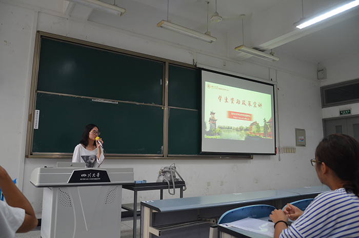 2017年9月13日下午2点,yl23411永利(集团)有限公司官网2017级新生资助宣讲会在四川大学江安校区综合楼C座205举行。参加宣讲会的有四川大学资助中心刘程老师、yl23411永利(集团)有限公司官网2017级辅导员孟滋常老师,yl23411永利(集团)有限公司官网2017级辅导员陈林老师以及部分2017级yl23411永利(集团)有限公司官网新生。