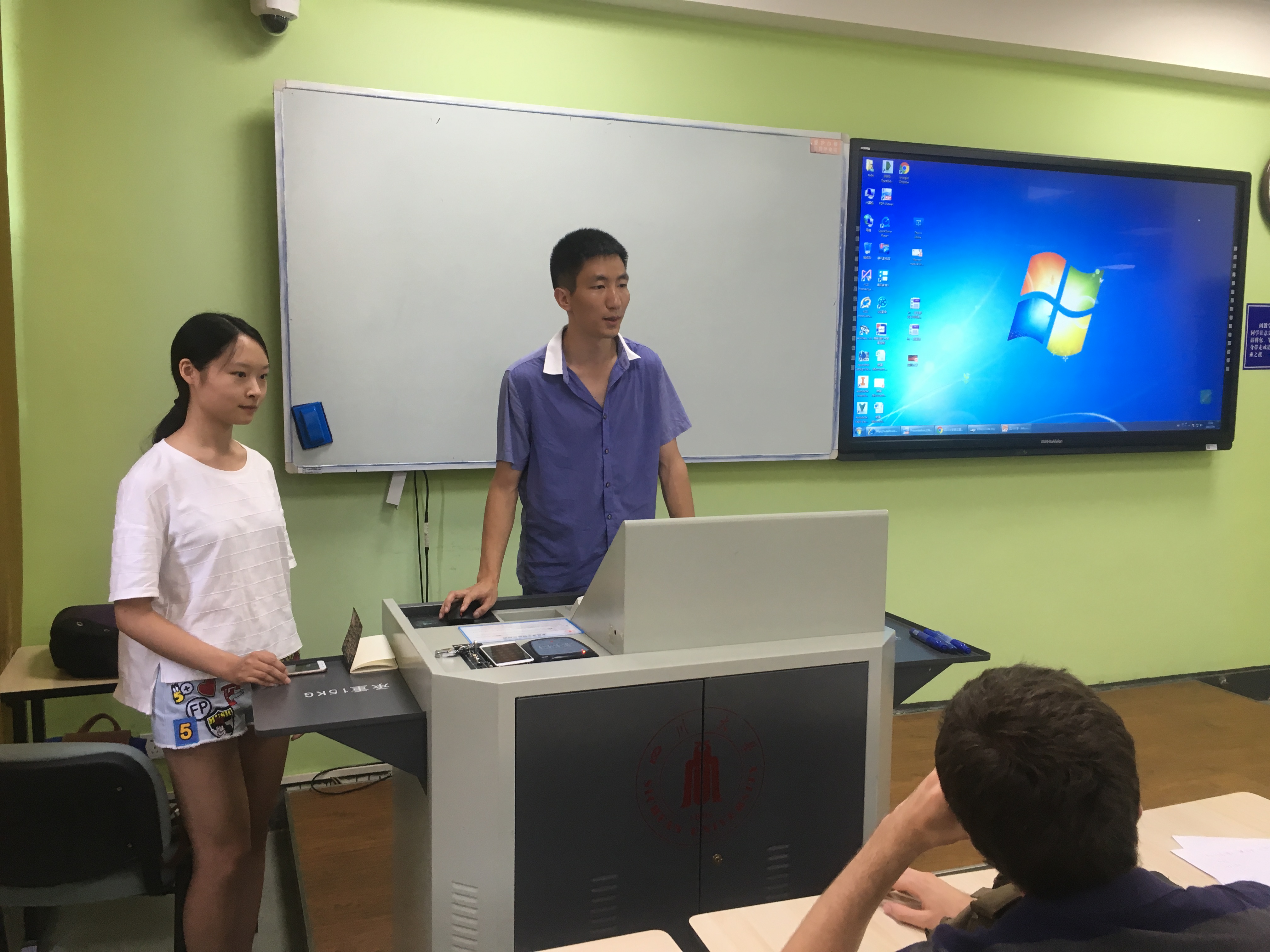 2017年7月8日下午4点30分,在望江校区第三教学楼107教室,我院参加国际交流营的第三组同学与来自法国和中国科技大学的同学开展了一次专题交流活动。我院同学向他们介绍了四川大学的历史文化、杰出校友、学风校训等。