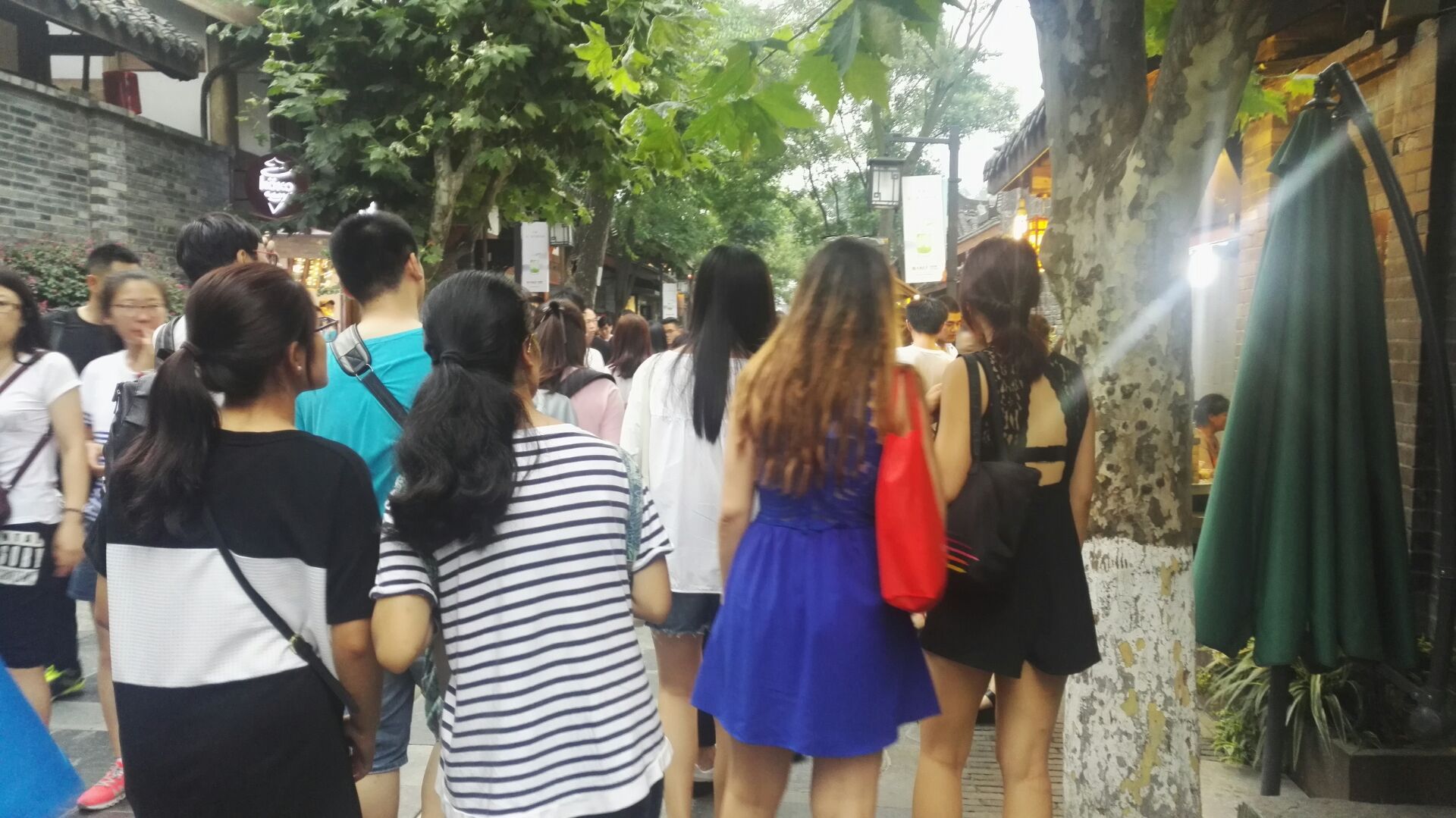乘地铁至宽窄巷子,引入眼帘的青黛砖瓦砌成的仿古四合院落吸引了大家的目光,踏在青石板上,步入巷子深处,我校同学简要讲解了宽窄巷子的历史背景、特点及现存的意义,介绍并带大家品尝了成都名小吃:三大炮、凉面、兔头……沿途不少的人文风俗、建筑雕饰也令大家驻足:从流淌着怀旧气息的宽巷子到绵延着小资情调的窄巷子;从书写着沧桑历史的砖文化墙到永保平安的恺庐;再添上街头弹唱的艺人、巷边掏耳朵的老师傅,一幅成都画卷悄然展开。