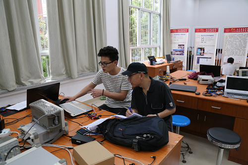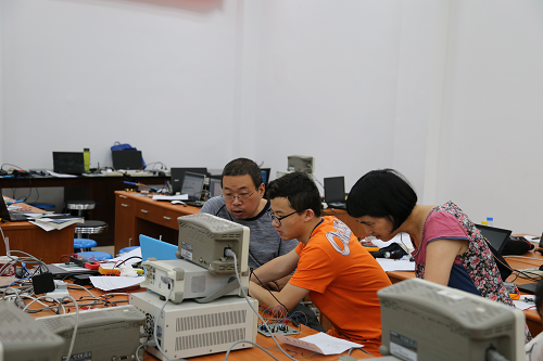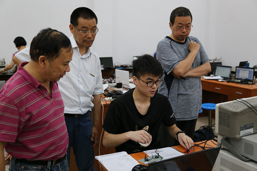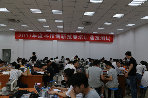 本次选拔赛于2017年6月3日上午9点在望江校区创新实验室正式拉开帷幕。与上一次大二大三学生分开进行不同,本次选拔赛大二大三学生同时进行。下午2:30开始,评委们对同学们的作品挨个测试。从测试的一开始,评委们便投入到紧张的评审状态,为每一个参加比赛的同学认真分析,测试电路,答疑解惑,一直持续到比赛结束。参赛的同学们或是认真思考,或是查阅资料,或是焊制电路板,或是与老师请教交流,分工明确,秩序井然。晚上8点左右整个选拔赛落下了帷幕,评委们一起离开了比赛赛场,并且边走边谈论着比赛的情况。参加比赛的同学,在认真地整理设备,简单地清洁赛场后也陆续离开,选拔赛完美结束。