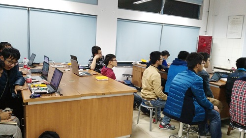 19:20,交流会准时开始。在这座无虚席的教室中,主持人开始作本次交流会的开场词,并对本次交流会进行了简要的介绍。在主场人宣布交流会开始后,各协会会长也轮流上台发言,并以亲身经历向同学们简单介绍了关于单片机的学习方法,并提出“多思考,多操作”实践方针。随后,对单片机研究颇为深入的学长们开始为同学们讲解一些关于单片机基础应用的较为细微的知识。同学们聚精会神地听着,认真地做着相关的笔记。看到同学们如此好学的态度,台上的学长们也讲解的更为卖力。讲解介绍以后,同学们积极地提出各种各样的疑问,各位学长们也都一一进行了解惑。有些同学还将单片机带来,并开始对学长们刚刚讲过的内容进行实践操作,遇到问题立即询问各位学长,教室中的学术氛围越发浓郁了。不知不觉中,交流会也即将面临结束。在主持人致闭幕词并宣布交流会结束后,同学们面带不舍的鼓起掌来。