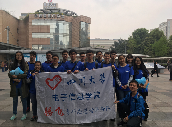 9点钟,志愿者们身着蓝色腾飞青年志愿者服务队队服,一路走向四川大学华西医院。靓丽的蓝色,吸引了不少路人的眼光,有不少路人上前询问志愿者们这是要干什么,大家热心地为他们解释此行的目的,同时向他们宣传自闭症儿童这一特殊群体的存在。
