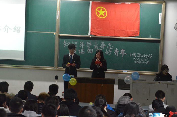 晚7点30分,主持人准时宣布团日活动开始,全体同学肃立奏唱中国共产主义青年团团歌。在主持人简要介绍了本次团日主题后,播放了一段视频剪辑:《永远在路上》。之后,由代表同学向大家分享了自己的观后感,为接下来团日主题的深入做了好的铺垫。接下来,姜越同学围绕“四进四信”发表了自己的见解。他的讲话生动且见解深刻,带动起了现场的气氛和大家的积极性,同时使同学们对“四进四信”有了更加透彻的理解。最后,大家在主持人的带领下开展起了有趣好玩的游戏环节:击鼓传花与道听途说,现场气氛达到了高潮。同学们在做游戏的同时,还快速浏览了许多富有文化特色的文章,并一齐合唱了红歌,这成功使得“知行并举青春志,四进四信好青年”的主题更加深入人心。