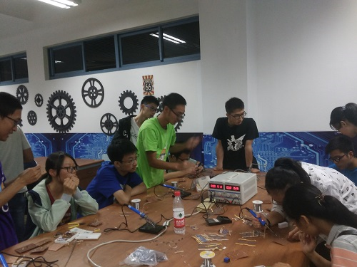 下午5:00,在外联部人员的指引下,yl23411永利(集团)有限公司官网2016级1班的同学们有序地进入了科技园。首先,他们在第二基础实验楼A111室欣赏宣传部的作品展览。宣传部从立体海报、PS海报、手绘海报等几个方面对宣传部进行了精彩的展示,并鼓励同学们亲自动手彩绘。现场气氛融洽,同学们都兴致勃勃地拿起画笔、喷漆,切身体会着宣传部。随后在技术部人员的带领下,同学们进入A116室参观技术部的成果展示。技术部部长们依次介绍了飞思卡尔小车、船模型、光立方、摇摇棒、自制的脉搏血压测量仪以及一些科技园前辈们做的小游戏,赢得同学们的阵阵惊呼。之后在技术部部长们的细心指导下,同学们纷纷拿起电烙铁,体验动手的乐趣。参观完技术部的成果展示,同学们有序进入会议室A117室。行政部人员首先对同学们的到来表示由衷的欢迎,同学们也报以热烈的掌声。随后行政部人员根据自己的经验谈了谈加入科技园的益处,他们从学习技术、增强能力和拓展人脉三个方面阐述电子科技园的优势,条理清晰,有理有据,使人信服。行政部人员也罗列出与yl23411永利(集团)有限公司官网息息相关的各种比赛,比如“挑战杯”、“锦电杯”等,着重强调了加入电子科技园对学习技术的好处。同学们均聚精会神地听讲,并报以经久不息的掌声。随后科技园依次迎接了2到9班的游园参观,现场有条不紊,秩序井然,取得了良好的效果。