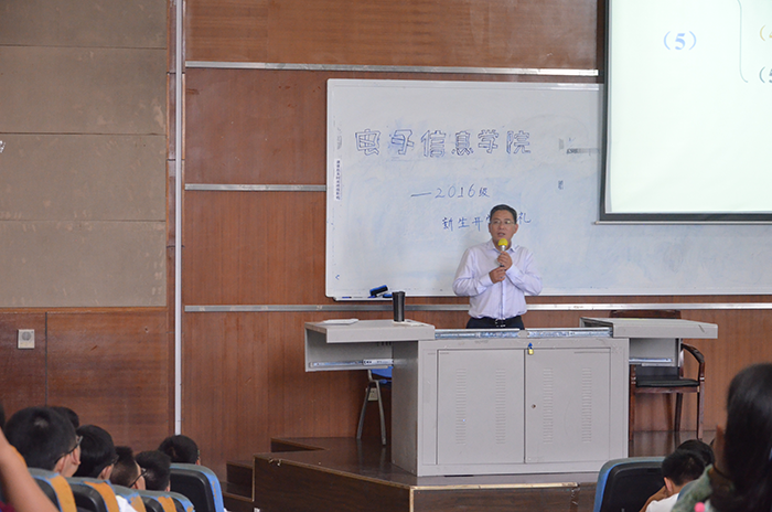 2016年9月14日,四川大学yl23411永利(集团)有限公司官网2016级新生开学典礼暨入学教育在江安校区综合楼C座407教室如期举行。参加本次活动的有学院党委蒋斌书记、学院分管本科生教学副院长周新志教授、学院分管研究生教学副院长冯国英教授、学院党委陈笃海副书记、2016级辅导员陈晓娟老师、2016级辅导员陈林老师以及2016级的全体新生。