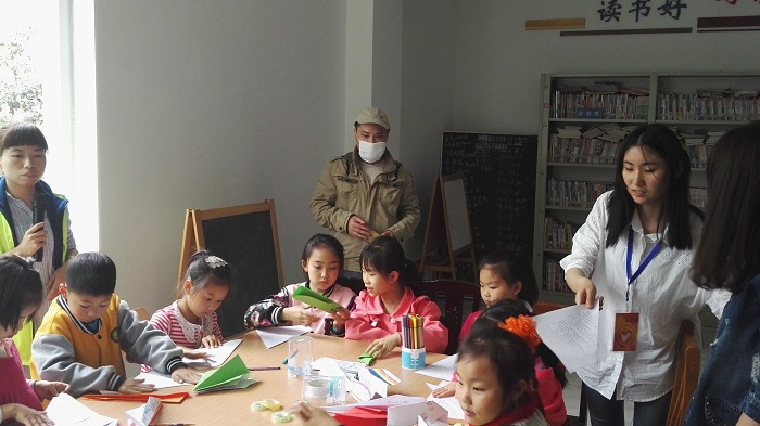 下午3时30分左右,志愿者们来到双流县长埂新居。在与老师进行了简单交流,签到登记后,志愿者们开始为动手小达人活动做起了准备。这次,志愿者们准备的活动内容是折纸飞机,志愿者们提前准备了A4纸,彩色卡纸和上色的材料。卡纸种类多,提供的上色材料颜色丰富,青少年们对折纸飞机产生了浓厚的兴趣,迫不及待地想要参与到活动中去。下午4点左右,活动正式开始。志愿者们把青少年们召集到教室之中,通过志愿者们的简短演示和指导,青少年们开始动起手来。