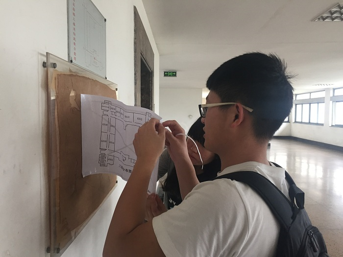 下午14时50分,志愿者们在第二基础实验楼集合,并征得了第二基础实验楼管理人员对本次活动同意与支持。下午15时,志愿者们拿出前期打印好的各楼层分布图和指示牌进行任务分工。随后,志愿者们依次从一楼到四楼在每个楼层的两个电梯中间的告示板粘贴楼层教室分布图,并在转角处粘贴醒目的路标。部分志愿者进行活动拍照以便活动后期的线上宣传。15时40分左右,活动结束,志愿者们整理剩余物资,对活动现场进行清扫,维持了楼道的干净清洁。