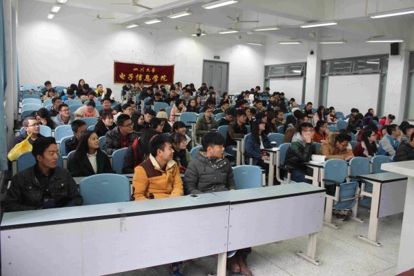 下午2点整,yl23411永利(集团)有限公司官网团副赖林宣布例会正式开始。首先,办公室的干事代表走上讲台,将办公室形象比作“管家”来介绍办公室在团学中的工作,其工作贯穿了所有的团学活动。接着,各部门干事代表依次走上讲台,以PPT幻灯片的形式介绍了各部门在本学期的工作内容和成果,同时展示了其和睦融洽的氛围。各部门的报告总结了一学期以来电子团学的重要工作成果和取得的成就,包括众多的运动、娱乐、学术性活动,多项意义深刻的志愿活动以及丰硕的宣传成果,其中在2015年四川大学凤凰展翅辩论赛中,yl23411永利(集团)有限公司官网辩论队一路披荆斩棘,跻身八强,创历史新高。各部门报告完毕后,团副赖林同学再次登上讲台对这次例会内容进行总结,让干事们思考进入团学后的舍与得,并希望团学可以成为一个大家庭。最后团学主席刘嘉程上台谈了团学的工作分配,期望在下个学期各部门能将活动切实结合到同学的生活中,增加集体凝聚力并协调好工作和学习。