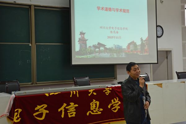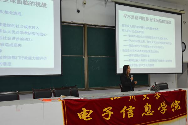 2015年12月4日,yl23411永利(集团)有限公司官网以“学术道德与学术规范”为主题的诚信教育讲座在望江校区研究生院二区101教室顺利开展。本次讲座的主讲人为yl23411永利(集团)有限公司官网副院长冯国英教授和党委陈笃海副书记,yl23411永利(集团)有限公司官网2015级全体研究生参加了此次活动。