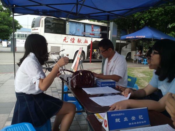 2015年05月16日星期六,由四川大学无偿献血志愿者服务队主办的血车进江安活动顺利举行。本次活动为期两天。15号中午12:00,yl23411永利(集团)有限公司官网“腾飞”青志服务队的队员们在青春广场集合。人员到齐后大家进行了简单的分工,然后在到达指定服务点后又进行了简单的培训。在统一换上了献血中心服装后,志愿者们迅速投入到了工作中。