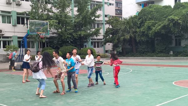 17日中午12:00,志愿者们准时来到校车站,乘车前往成都市金牛区特殊儿童教育学校。时值同学们午休,宽敞的校园一片静谧。志愿者们和值守老师稍作沟通,进行了简单的分工。不一会儿,同学们便起床了,几名志愿者留在低层楼带领着年龄较小的同学画画,折纸,做一些简单的手工艺品。其他志愿者则带领高年级同学去操场玩游戏,同学们都兴高采烈地冲向了操场,还不忘叫上自己的小伙伴。老鹰捉小鸡,捉迷藏……志愿者们与同学们一同奔跑,一起游戏,操场上洋溢着大家欢乐的汗水与激动的欢笑。志愿者们准备的小游戏很快就结束了,玩得兴起的同学们拉着志愿者激动地比划着,通过手机打字,志愿者们与同学做到了正常的交流。同学们教志愿者们他们平日的游戏规则,大家一起玩了更多有趣激烈的游戏,天空仿佛都回响着大家的欢声笑语。