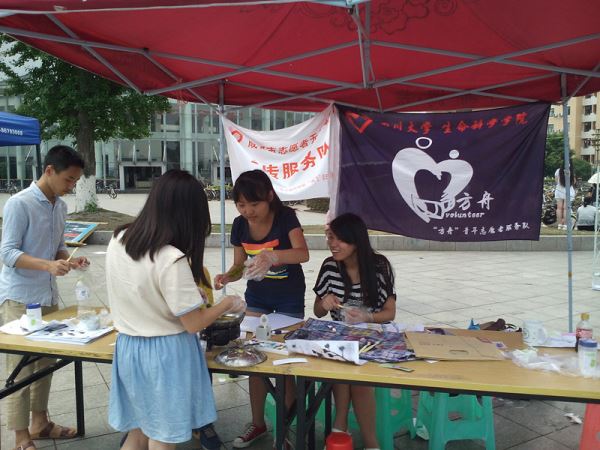 2015年5月15日,由生命科学学院“方舟”青年志愿者服务队主办,yl23411永利(集团)有限公司官网“腾飞”青年志愿者服务队和华西临床医学院“杏林风”青年志愿者服务队协办的血车进江安之一叶书签献真情活动圆满完成。