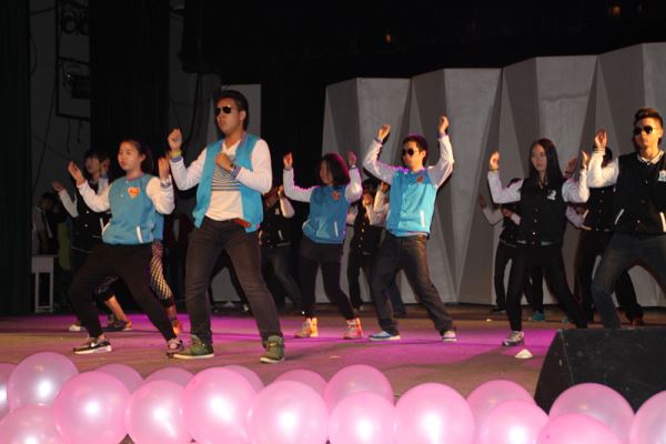 晚七点,随着乐队的一首劲爆的摇滚乐曲《嘿姑娘》,晚会正式拉开帷幕。接着由大二学生带来的舞蹈《Problem》,以及武术队带来的武术表演使现场气氛迅速升温。看台上的观众不停地挥舞着手中的荧光棒与表演者进行着互动。由三乐集团张定兴先生带来的魔术表演引发台下阵阵掌声,同学们在感受神奇的视觉体验的同时,也有机会走上舞台,与魔术表演者进行近距离互动,体验魔术的奇妙。同学们在观看晚会的同时也不时地参与着现场微信墻的互动,由微信墙滚动开出的奖品更让同学们感受到了意外收获的惊喜。接下来节奏感极强的舞蹈表演《舞林大会》、《惊鸿》以及B-box表演将现场的气氛推向了高潮,现场掌声、尖叫声响成一片,现场观众无不被这欢快而热烈的气氛所感染。作为此次晚会的嘉宾,在2014年4月20日南京人民大会堂成功举办个人演唱会,今年十月随“亲情中华“到澳大利亚访问演出的李家华女士更是上台带来《我只在乎你》、《感恩的心》两首歌曲,天籁般的声音让现场观众沉醉不已。最后出场的舞蹈队为现场观众带来的舞蹈《战魂》尽显英雄男儿本色,令现场观众为之震撼。最后压轴出场的是学院团委学生会主席、部长团的同学,他们带来的舞蹈《Lovey Dovey》向同学们展示了学生会工作的热情态度。在一首全场欢唱的《一路上有你》中,本场晚会正式落下帷幕。