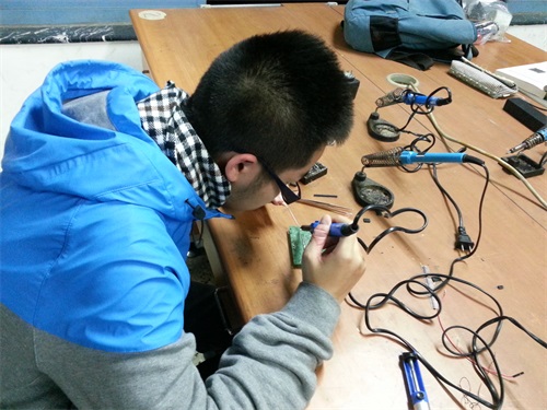 为了能使大家更好地了解此次特色讲座,首先,嵌入式协会会长刘仁杰同学对讲座流程及讲座意义做了简短的介绍。随后,电子科技园主席林诗杰同学对单片机知识开始了详细的讲解。他先由简单的单片机的构造、种类、主流机型入手讲解,再过渡到单片机硬件、开发、定时与中断等系统,又介绍了并行I/O口应用与A/D与D/A转换接口,系统扩展的内容。为了使还不具备十分优秀的C语言基础的大一新生们更易理解,林诗杰同学列举了许多形象生动的例子,将费解的知识点条分缕析,并及时向在场同学提问,讲解过程通俗易懂。最后,林诗杰同学和刘仁杰同学分别拿出单片机开发板作演示,并指导同学们自己动手设计焊接最小系统。讲座结束后,仍有许多同学询问了许多关于单片机原理的问题,他们都一一耐心解答,讲座在融洽的氛围中结束。